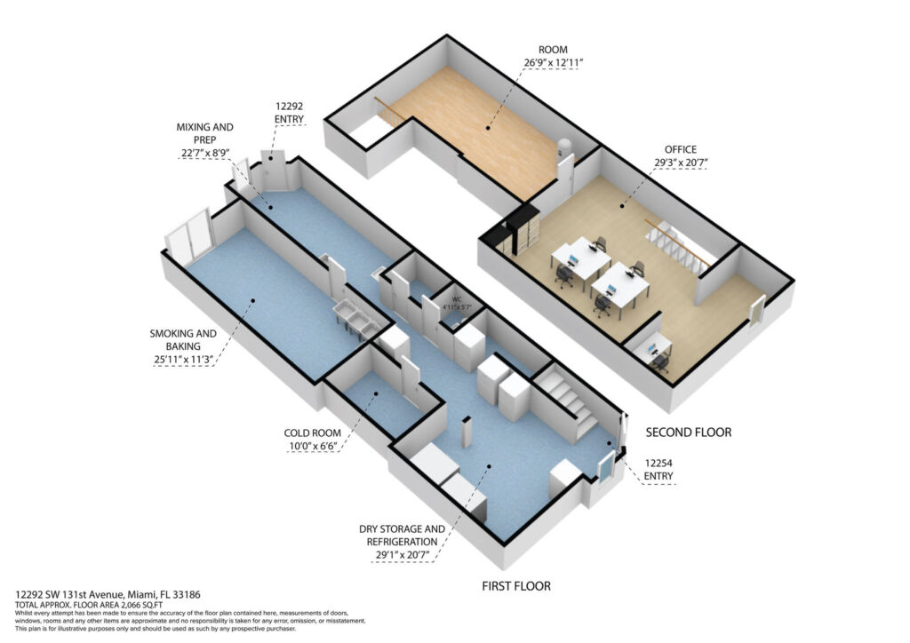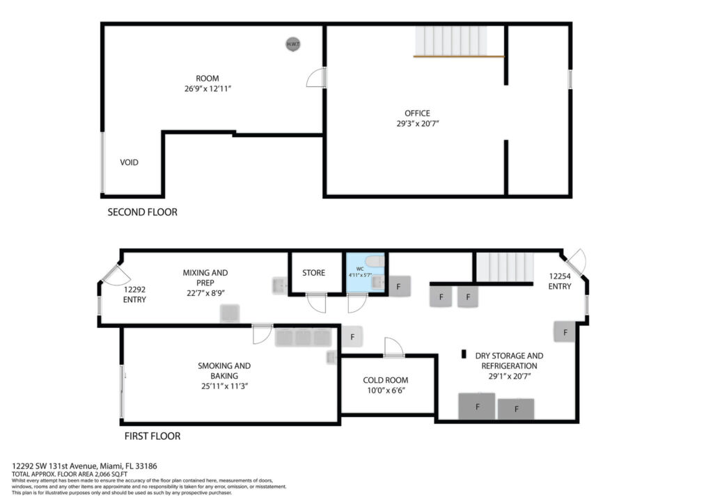Fully equipped Commercial Kitchen in the heart of West Kendall. Double unit featuring two floors with over 1,140 SF of ground floor space plus a well-equipped mezzanine office space. Renovated/remodeled within the past two years, including new roof installed in 2022, new epoxy floors throughout the ground floor, all new water lines, new 5 Ton A/C installed in 2021 and much more. This professional set up is full of high-end culinary equipment included in the sale, set up includes a new hood and a ± 900-gallon grease trap, 3-phase power, private accessible bathroom, low HOA fee, assigned parking. Excellent location in the Tamiami Airport Submarket, steps from London Square and easy access to turnpike and 874 highways. Turnkey, ready to use day 1! A must see!